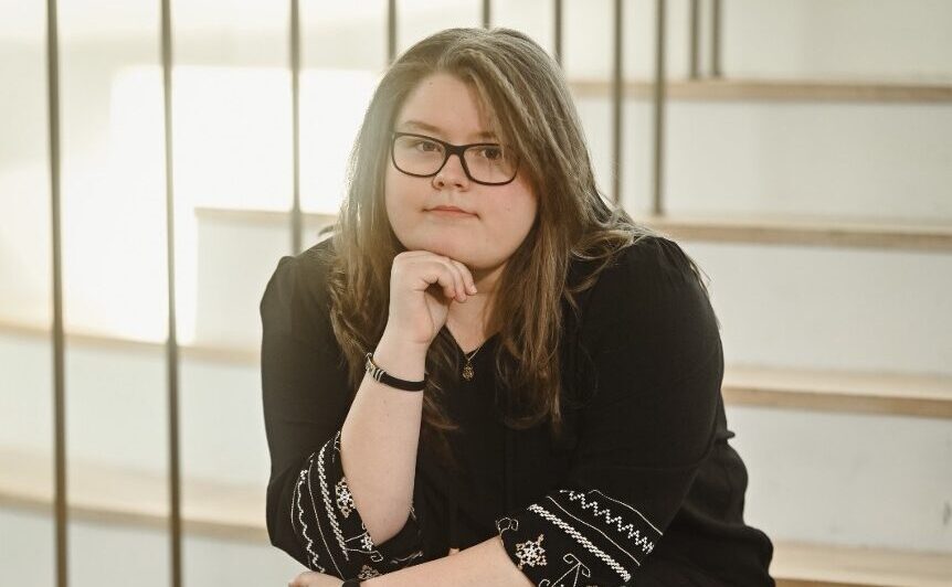 Alexandra Tiron (b. 2005) is a visual artist from Iași, Romania. She graduated from the “Octav Băncilă” National College of Arts and is currently studying at the “George Enescu” University of Arts, Faculty of Visual Arts and Design (Interior Design), as well as at the “G. M. Cantacuzino” Faculty of Architecture. She has participated in the National Architecture Olympiad, international workshops such as DIVERS-CULT (Promoting Cultural Diversity in Schools), Junior Achievement programs, and student exhibitions. Her artistic practice focuses on collage and mixed media, exploring the intersection between tradition and contemporaneity, as well as how mass media and community shape identity and the perception of time.