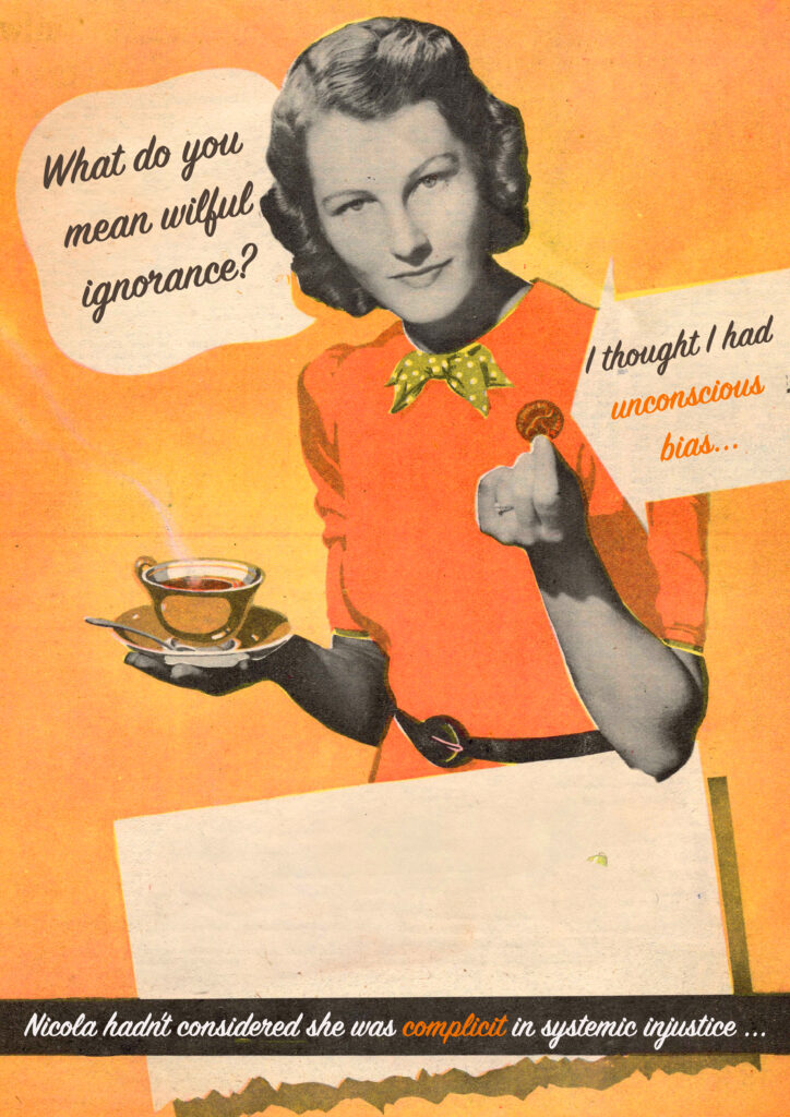 WHA Hunter is a Scottish born artistic activist. She currently lives and works in Naarm, Australia. For the last 30 years Walsh has worked as an activist across Australia and Internationally. Her work supports intersectional and abolitionist community-led reimagining and change for family violence, gender inequity and anti-racism praxis through arts-based programs and initiatives. In 2024 Walsh completed her Diploma in Visual Arts at NCAT and has participated in several group exhibitions in Naarm since 2023. Walsh has sold work in Australia and internationally. As an artistic activist WHA is an observer of power, specifically that of white capitalist patriarchal systems that continue to block all possibilities for social change at all levels of our society. WHA is deeply curious about cut through messages, sometimes humorous, that support individuals and communities to have conversations and take collective action for substantial change. WHA draws on a wide range of influences including First People’s ongoing activism and methodologies; abolitionist movements; intersectional feminism; and anti-racism praxis. WHA is inspired and motivated by political collage and text-based movements, First People’s political art, feminist collective arts, and political protest and post punk graphics.